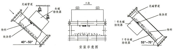 RCYA管道永磁除鐵器包括無磁管道和永磁鐵兩部分,專用于對封閉管道內非磁性物料的除鐵,永磁除鐵器內部采用高性能稀土強磁材料組成復合磁系。具有體積小、磁力大、重量輕、除鐵干凈、方便、無能耗、使用壽命長等特點。適合沒有輸送皮帶,只能提供下料溜槽的場合。當散狀物料經過管道式永磁除鐵器時,鐵雜物被高場強的永磁鐵所吸附,清除鐵雜質時,打開管道專用門將雜質取除。該設備適用于含鐵量較少的場合,含鐵較多的場合應選用自卸式除鐵器。主要應用于水泥、化工、煤炭、塑料、耐火材料、建材、造紙等行業(yè)的下料管道中清除鐵雜物。
